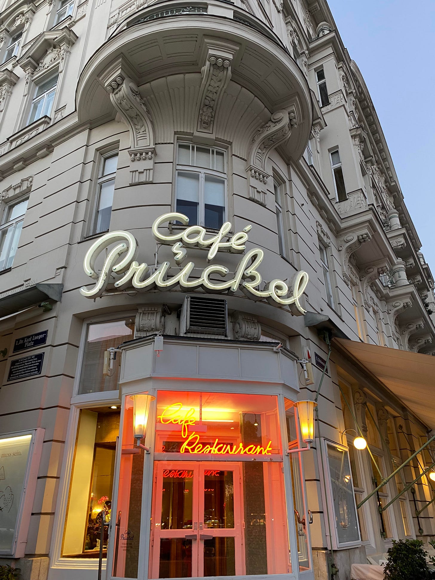 Vienne est cafés. Café Sperl, café Landtmann, café Prückel, café Demel, café du Belvédère, café Haas & Haas, café du Kunsthistorisches Museum, et tant d’autres qu’il faudra revenir voir. J’apprends qu’un café viennois se dit “Einspänner”. Café pour regarder les joueurs de billard affairés à dix heures du matin, café pour observer ceux qui trainent en fin d’après-midi et étirent le temps, café pour souffler une bougie d’anniversaire sur une part de Sachertorte, café pour lire Le Monde en écoutant ses voisins de table discutailler en allemand, café pour tenter de sentir l’épaisseur et la grandeur de l’histoire qui s’est infiltrée entre les banquettes et coussins tapissés, entre ces murs boisés, sous ces luminaires flamboyants.